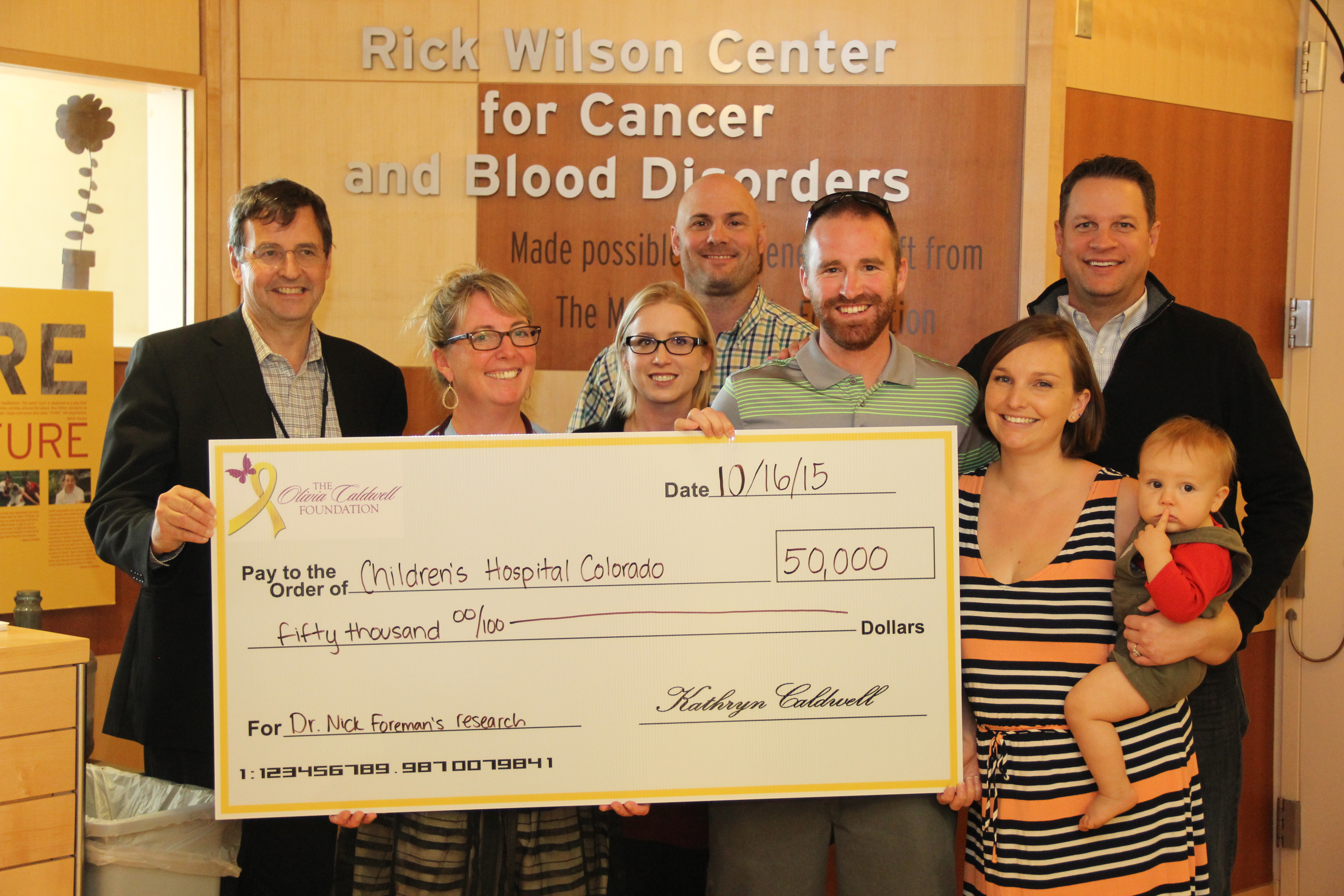 We had the pleasure of presenting a check for the second year in a row to Olivia’s doctor as a part of our foundation. This year the check was for $50,000 and it helps to pay for research projects performed in his pediatric neuro-oncology lab.